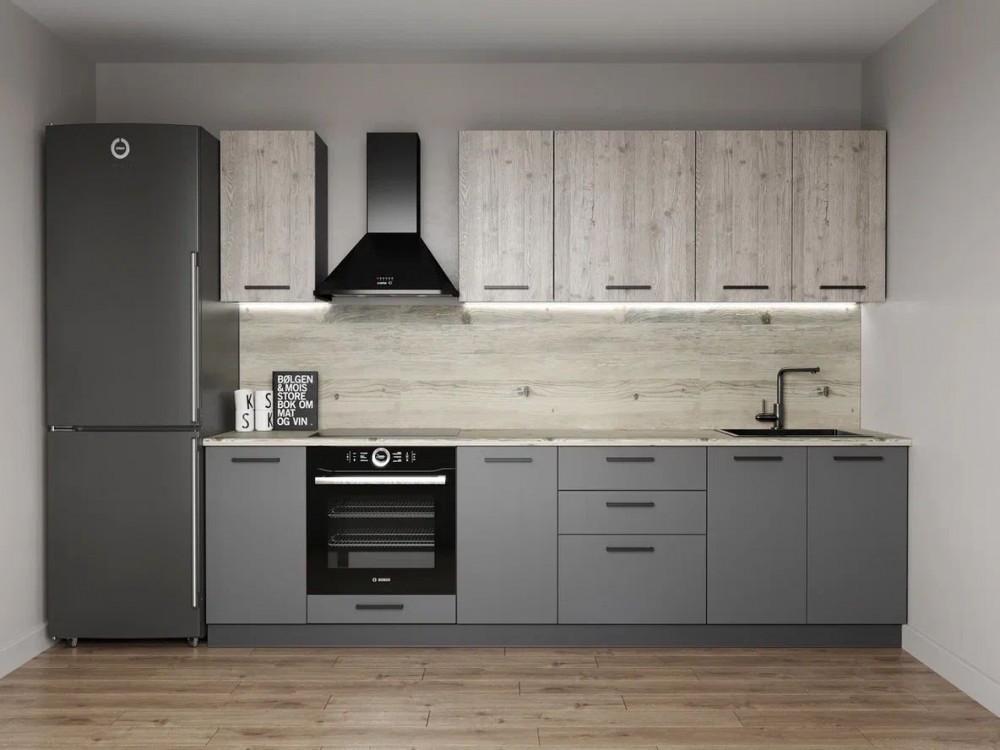 Столешницы цельные с пластиковым покрытием со скруглением по переднему краю (постформинг толщина 26 мм).