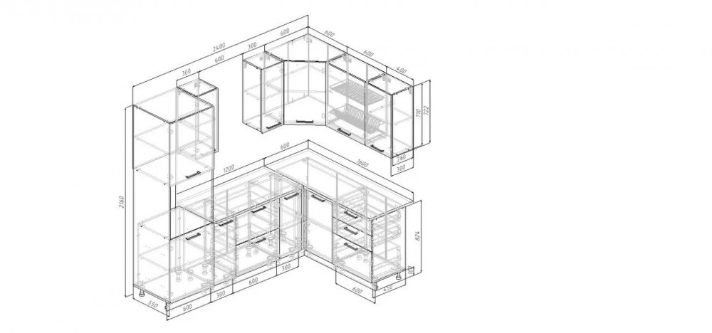 Корпус нижний 1000х470х824 МН100 угловой с полкой 1шт