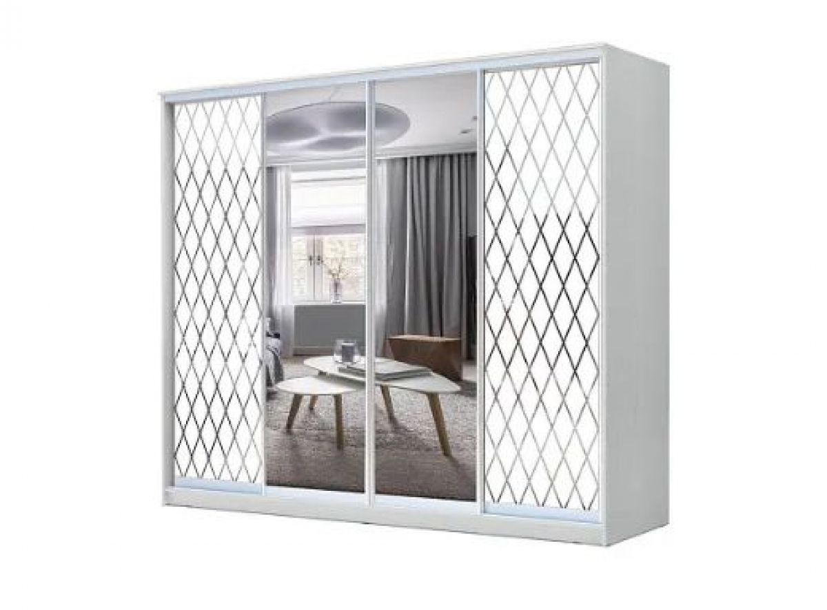 Фасад: 2 двери Зеркало + 2 двери с пескоструйной обработкой