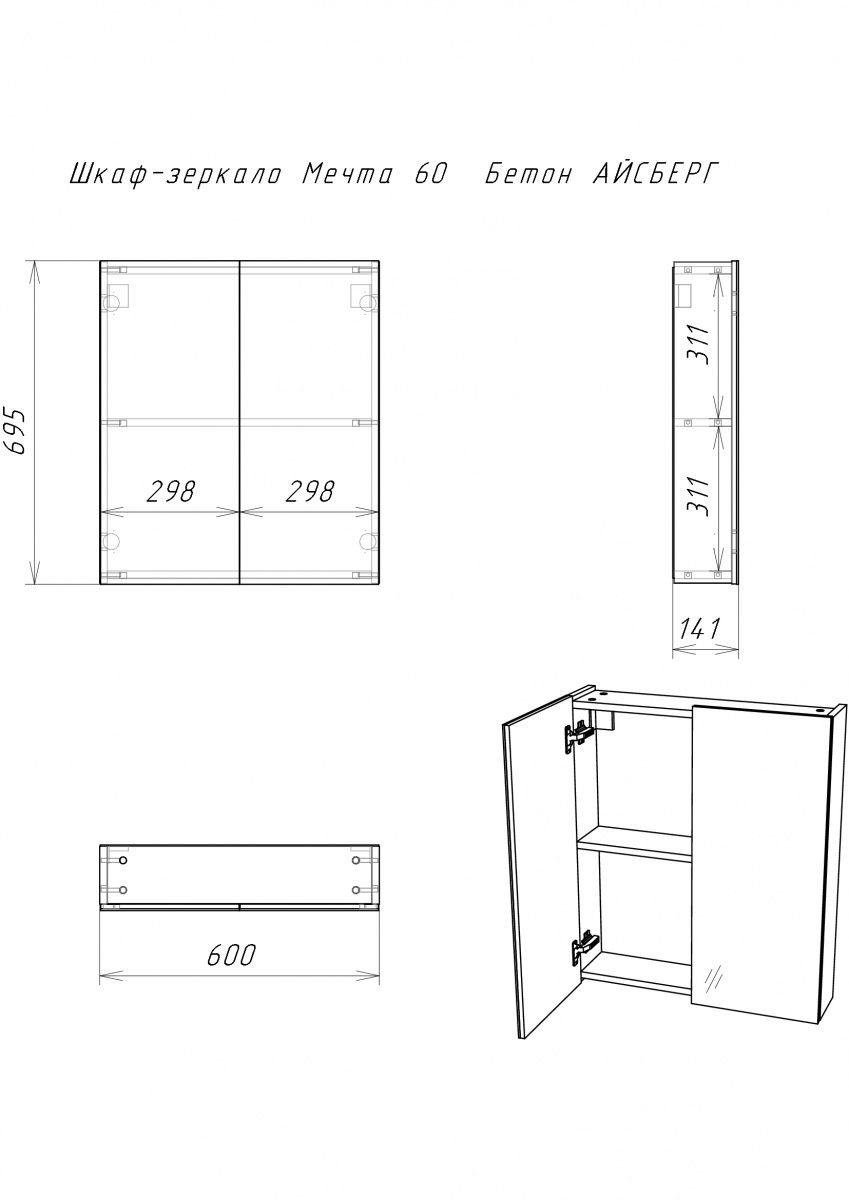 Шкаф-зеркало Мечта 60 Бетон АЙСБЕРГ (DM2338HZ)