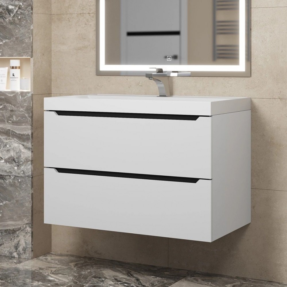 Тумба под раковину Uperwood Tanos 80 см, подвесная, белая/графит